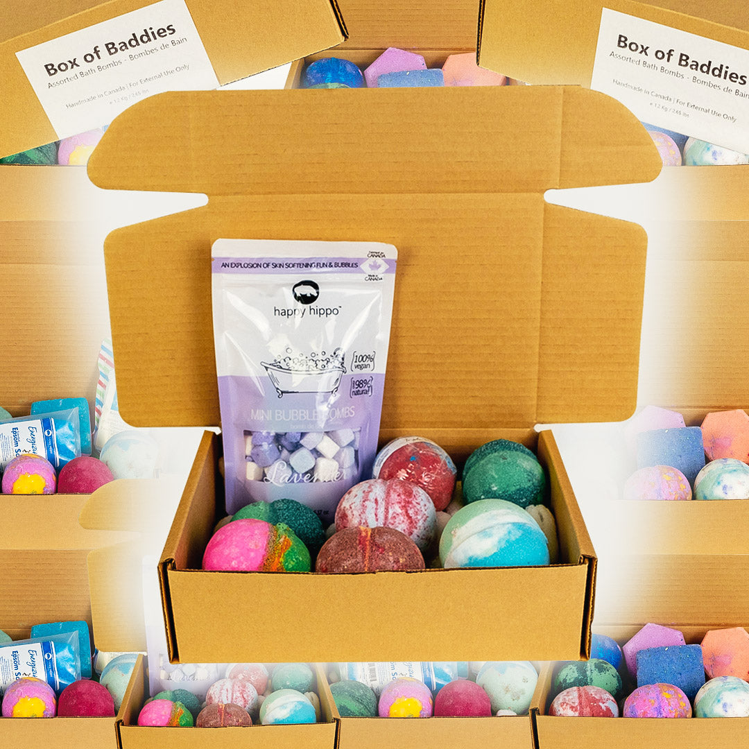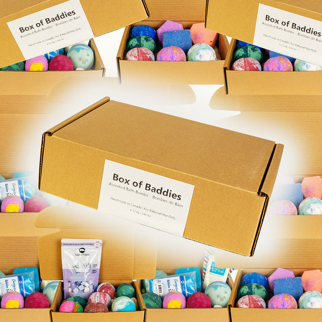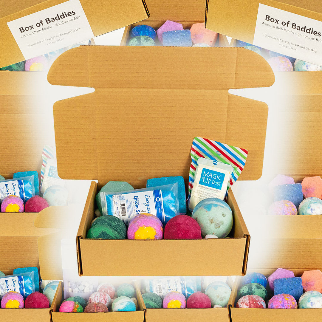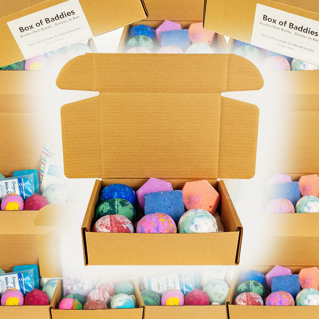The box contains the equivalent of at least 8 full sized bath bombs Items.
